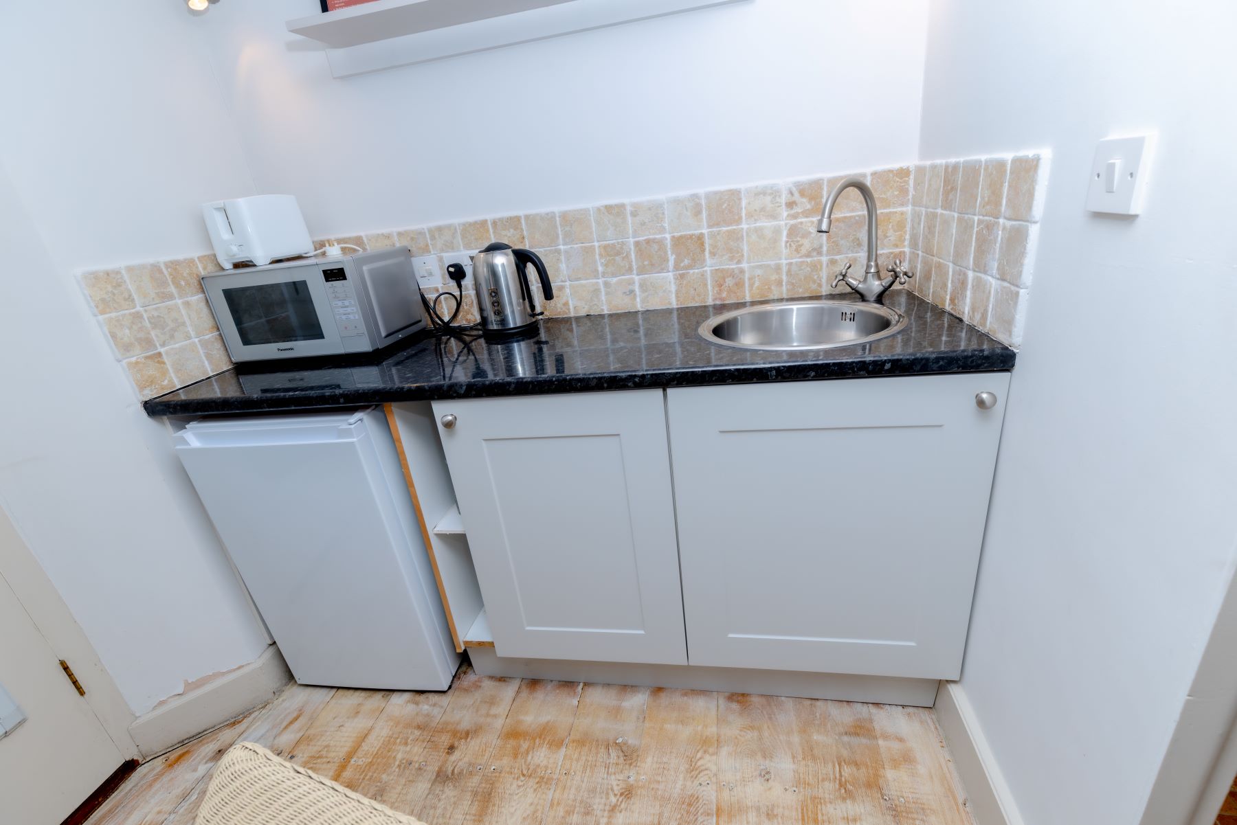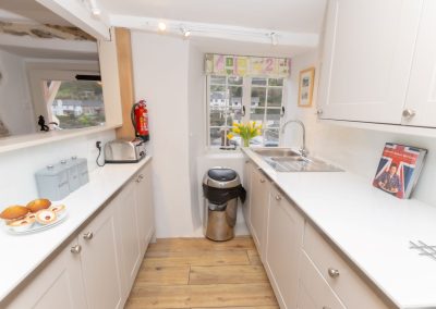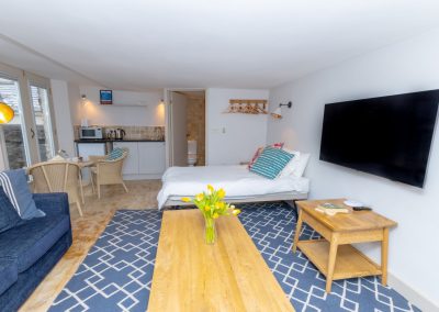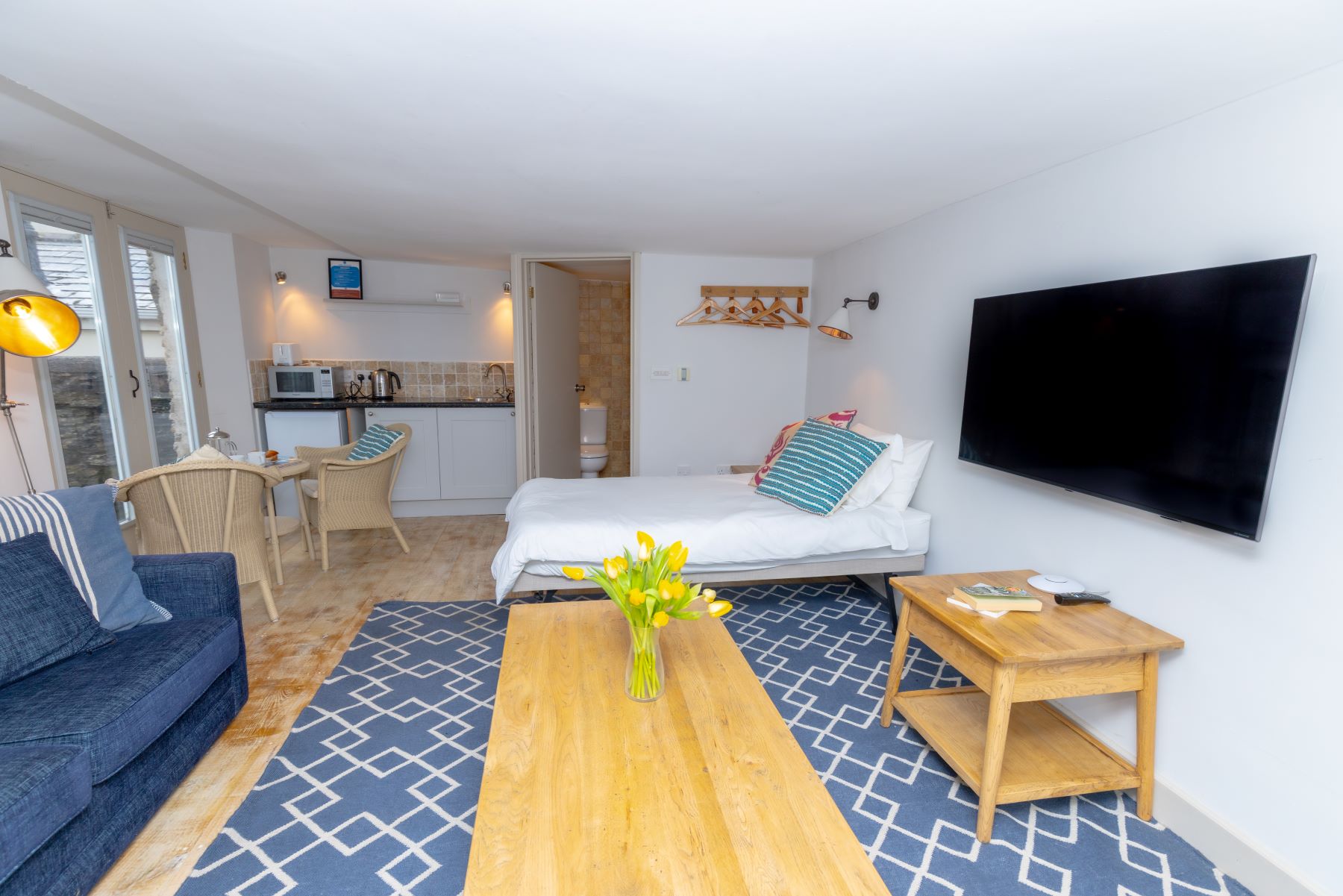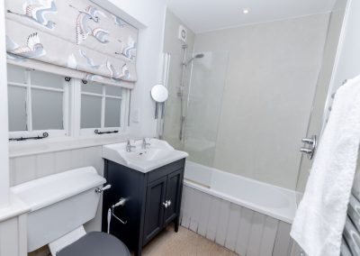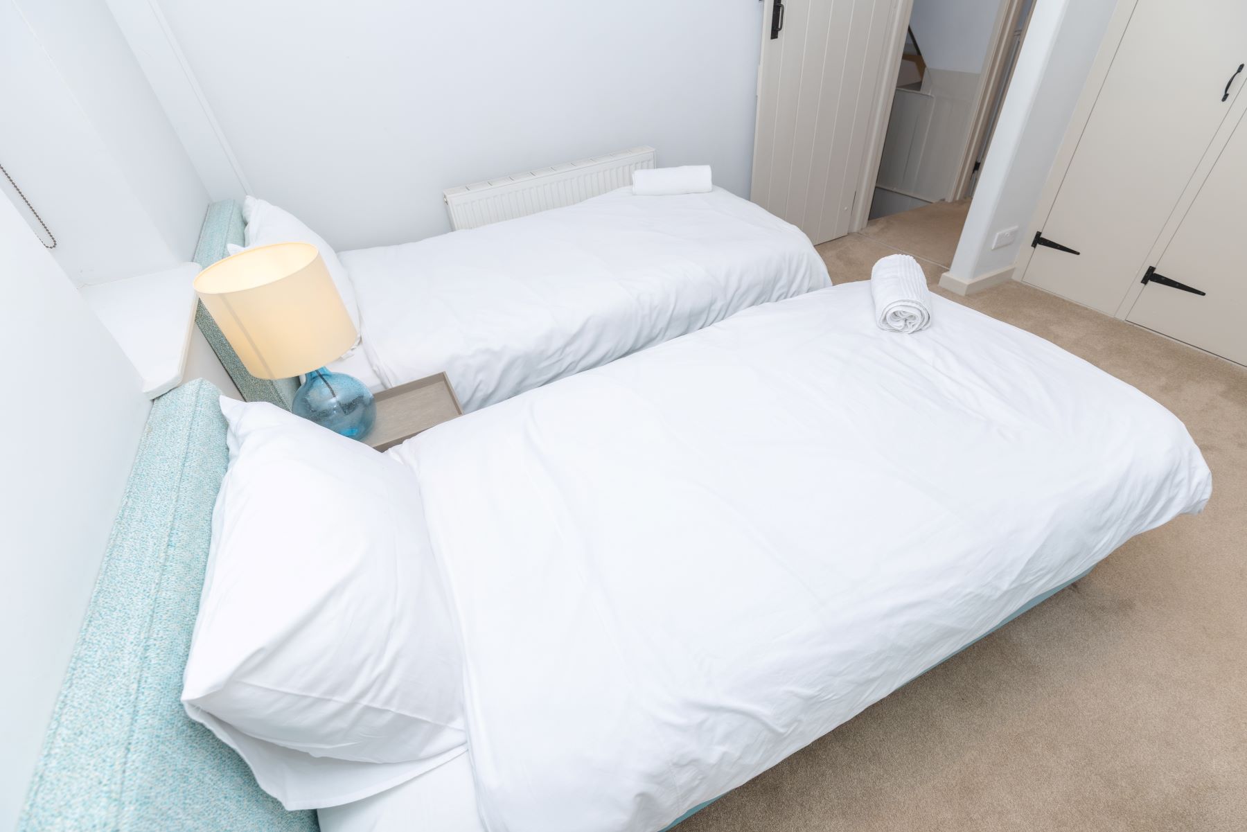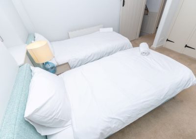 • Studio annex just across the lane from the main house, with kitchenette (microwave, fridge, kettle, sink), sofa, table and chairs for two, and shower wet room with toilet and wash basin. Features full-height folding doors offering stunning estuary views. There is also a utility area with washing machine and tumble drier, and storage area ideal for beach or sailing gear. This space can be set up as Bedroom 4 when requested in advance – arranged as two singles or a double.