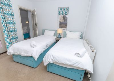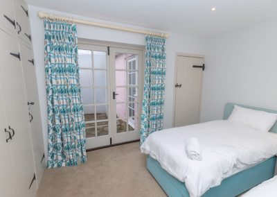 • Bedroom 2 has twin single beds and French doors opening onto back garden.