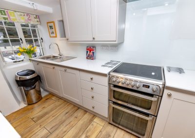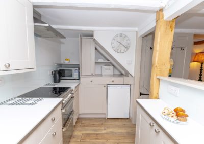 • Kitchen-dining room, including electric cooker, microwave, dishwasher and storage cupboard (be careful of low ceiling beams – 6’2”), dining table and chairs for six people.