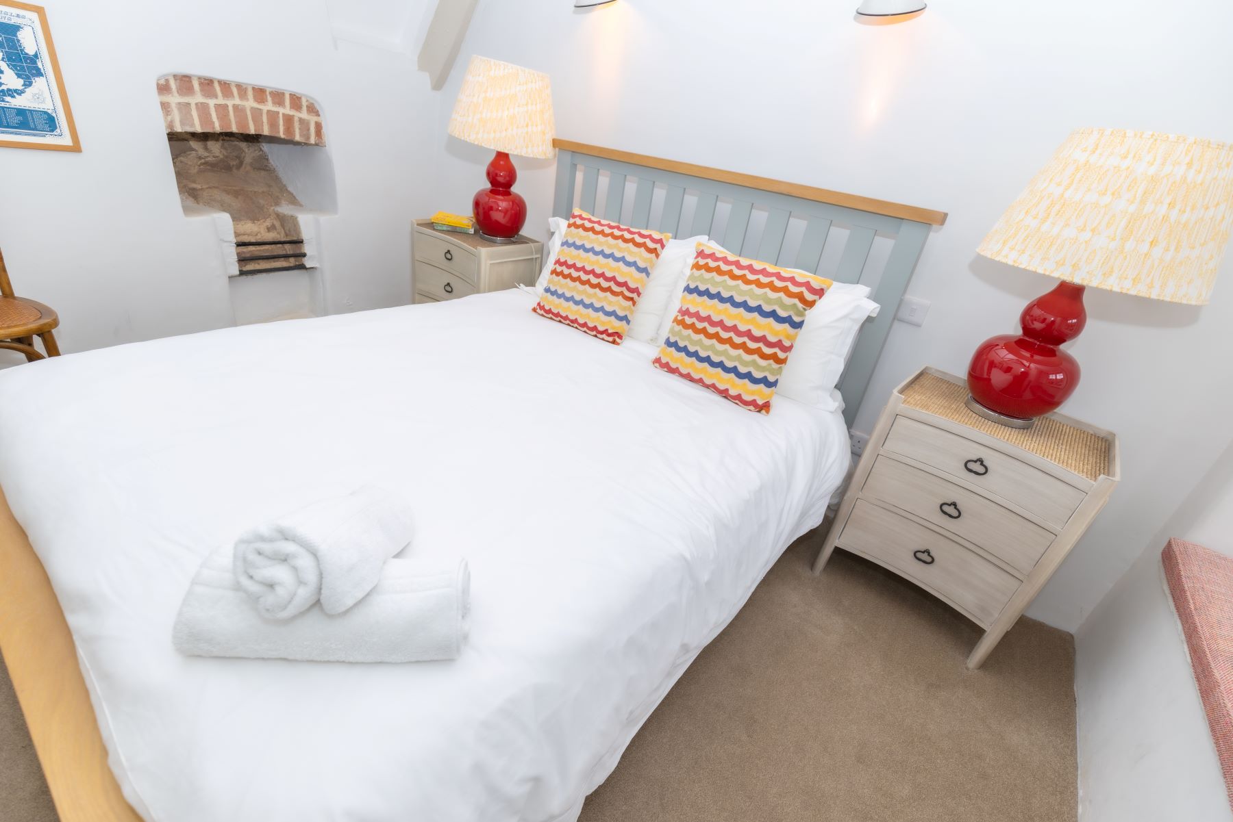 But for all the lovely period features of this Grade II Listed home, there’s a light an airy feel and plenty of modern comforts to make your stay a pleasure. Bright white walls, with joyful splashes of colour, complement the old world wood and stone. And the open vaulted ceilings upstairs brings a sense of drama and spaciousness. At the rear of the property, a secluded garden and terrace allow you to enjoy the outdoors.